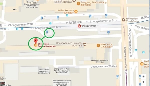 Exit D of Chongwenmen station on Line 2 or Line 5, restaurant almost directly opposite the subway exit.