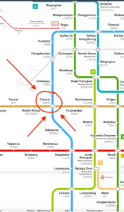 D’erections: Arrive at Cishousi metro (lines 6 & 10) Exit D.