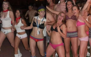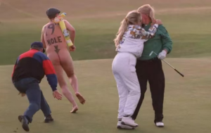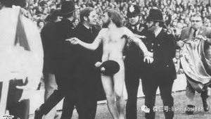 The naked Australian Michael O’Brien ran past the stand during a rugby game.