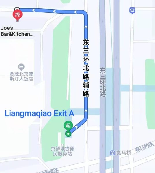 If you’re on the Subway take Line 10 to Liangmaqiao, get out at Exit A and walk towards the Westin Hotel car park (North). It’s next to the Starbucks.