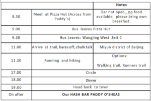 8:30am meet at Dongzhimen Pizza Hut (Across from Paddy O` Shea`s), bus departs at 9:00am sharp!