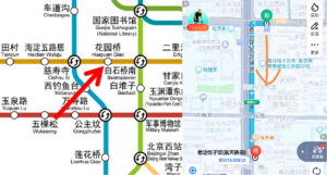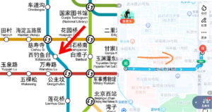 Subway line 10 Xidiaoyutai station Exit A, 1.2km walk