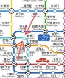 Get off at Xinjiekou Line 4, then zip up your pants and take Exit B. Walk north 400 meters (a mere four minutes). Meet up is outside this convenience store.