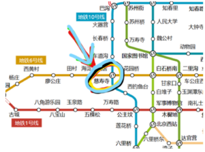 Agricultural Exhibition Center subway station农业展览馆(Exit D2) Ten minutes walk west.地铁:10号线亮马桥站西北A口