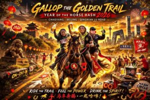In the vibrant heart of Beijing, along the lively stretch of Qingnian Lu Road in Chaoyang District, we proudly present an electrifying hash trail inspired by the bold spirit of the Year of the Horse.