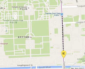 Subway Line 5 Station TianTan DongMen Exit C, and it’s actually 1 km (straight south) to the resto…