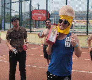 3.The runner will again drink another beer and do another lap, 4 times total.
